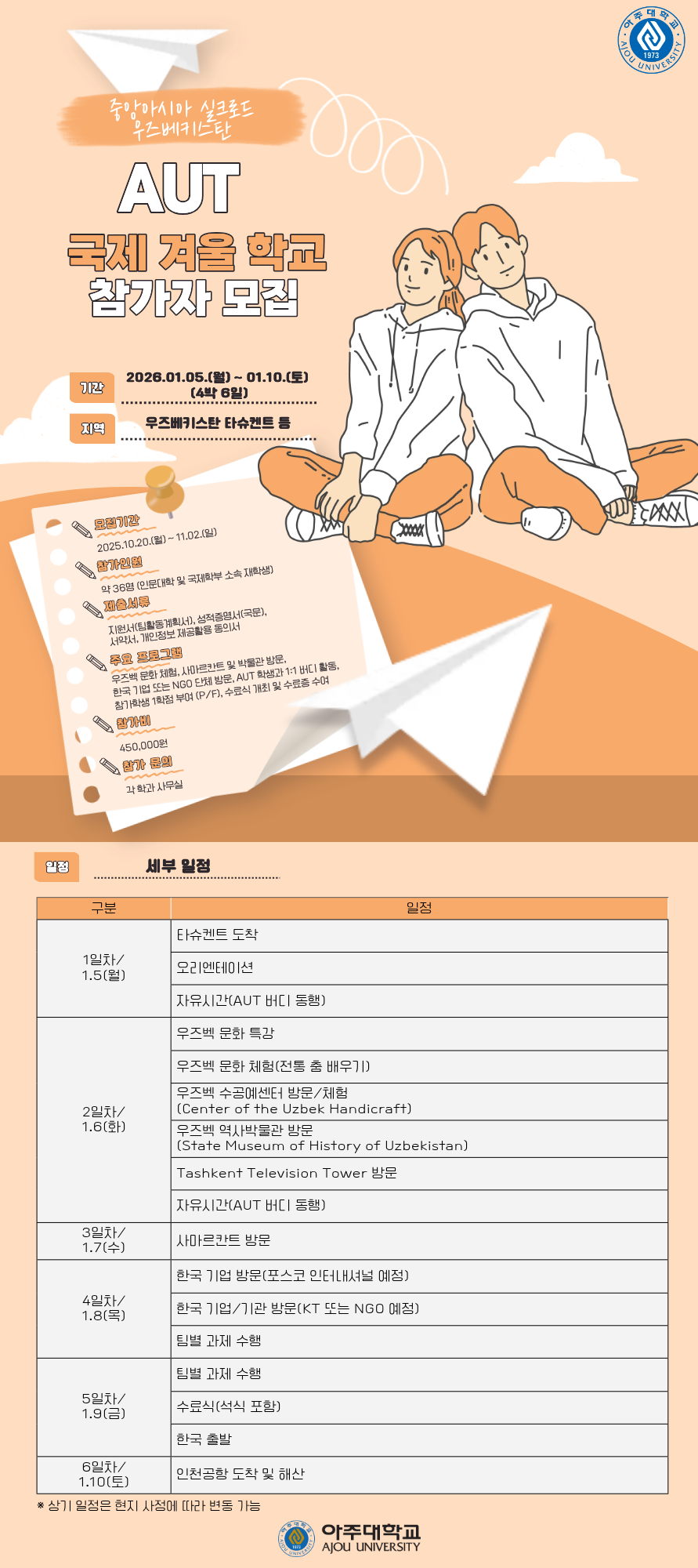 [기타] [인문대학/국제학부] 우즈베키스탄 AUT 국제겨울학교 참가자 모집 공고